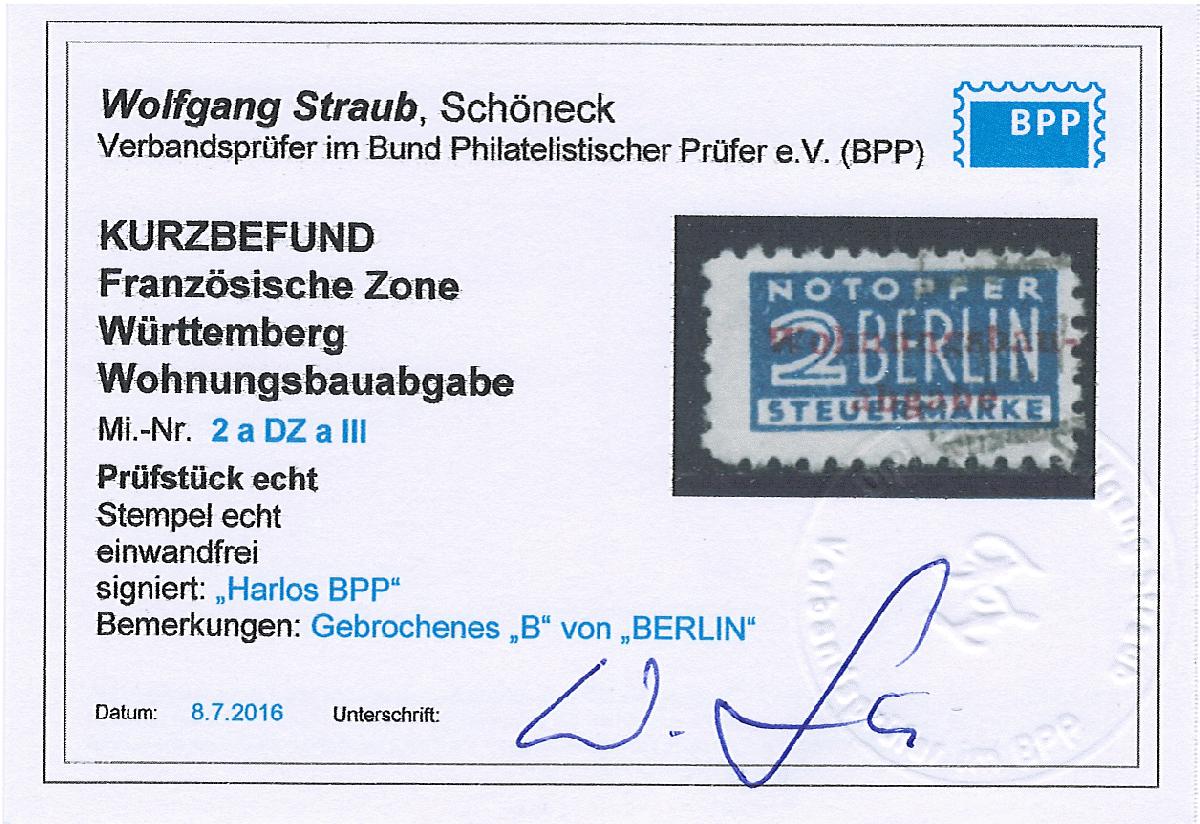 | Zusatzinformationen und Suchstichworte: | Wohnungsbau Nr. 2 DZa III Plattenfehler auf Urmarke |