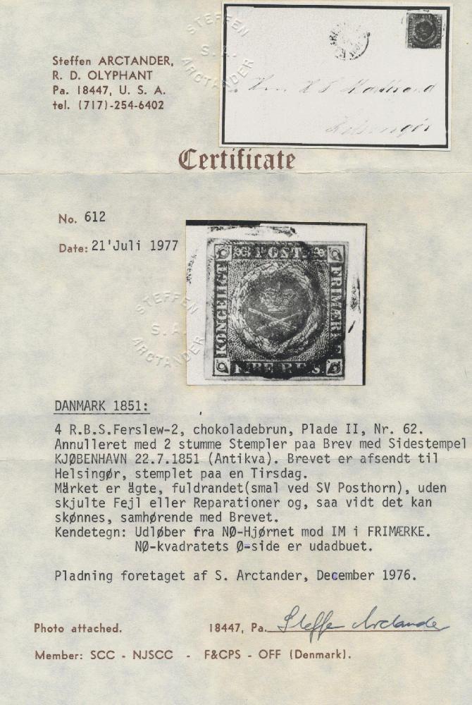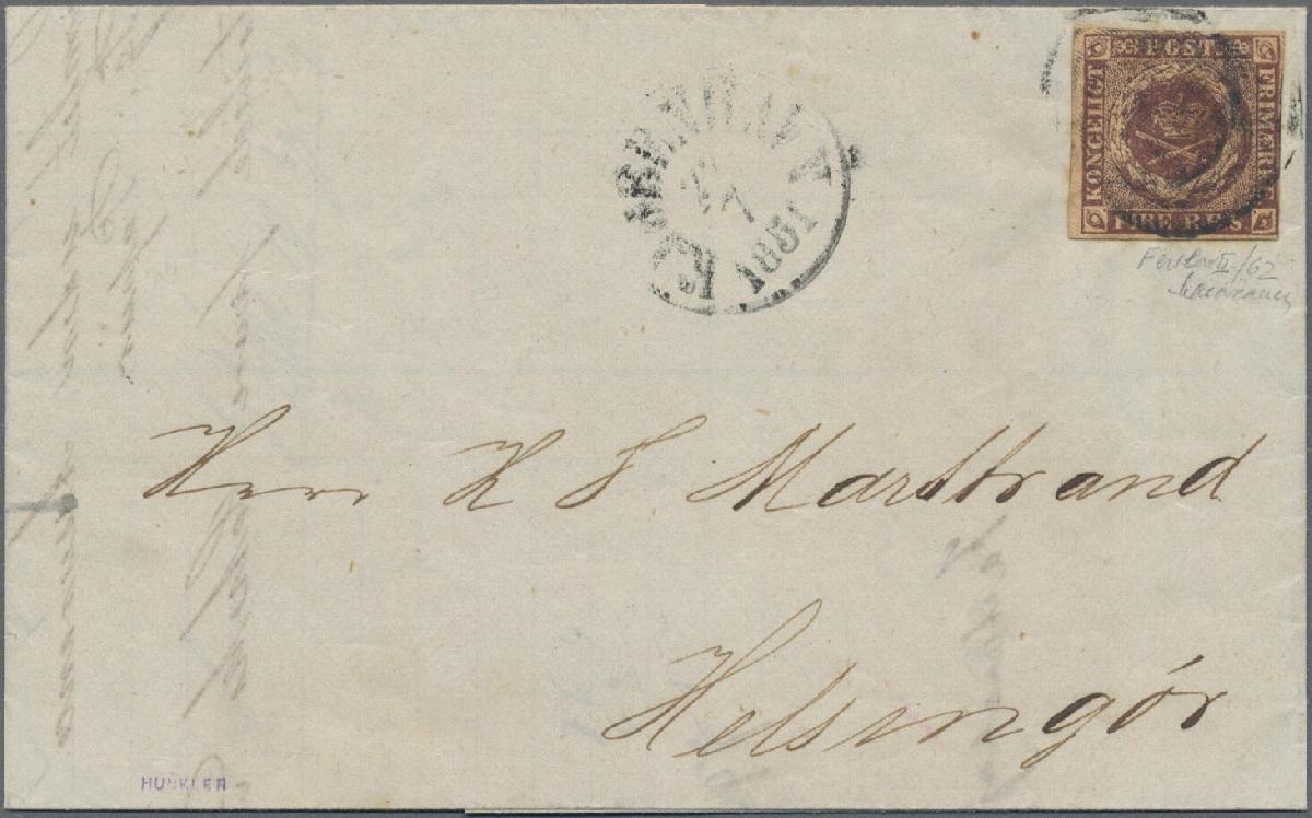| Zusatzinformationen und Suchstichworte: | Christoph Gärtner 57. Auktion 16. - 20. Oktober 2023 Los 3231 Dänemark 1851-54 erste Ausgabe 4 R. B. S. braun, fünf gestempelte Einzelmarken von verschiedenen Drucke in diverses Brauntöne, plus ein Exemplar (Ferslew-2, schokoladenbraun, Platte II, Position. 62) verwendet auf Ganzstück von Kjøbenhavn zu Helsingør in 1851 (Arctander Attest) Ausruf 150,00 EUR |