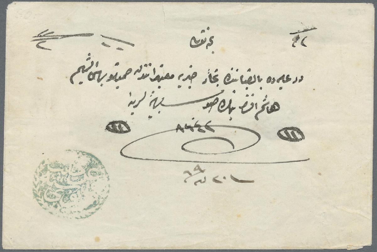 | Zusatzinformationen und Suchstichworte: | Christoph Gärtner 57. Auktion 16. - 20. Oktober 2023 Los 3225 D Bulgarien 1853, Brief aus Veliko Tarnovo nach Konstantinopel mit sauberem Abschlag von vollständig arabischem negativ An Canib-i Posta-i T?rnova 1262 Handstempel in blau (Coles und Walker fig. 77). Gewicht 3 Dirhem/Postgebühr 2 Piaster 10 paras oben handschriftlich, Attest Arsman TFDF 1996 Zuschlag 35,00 EUR |