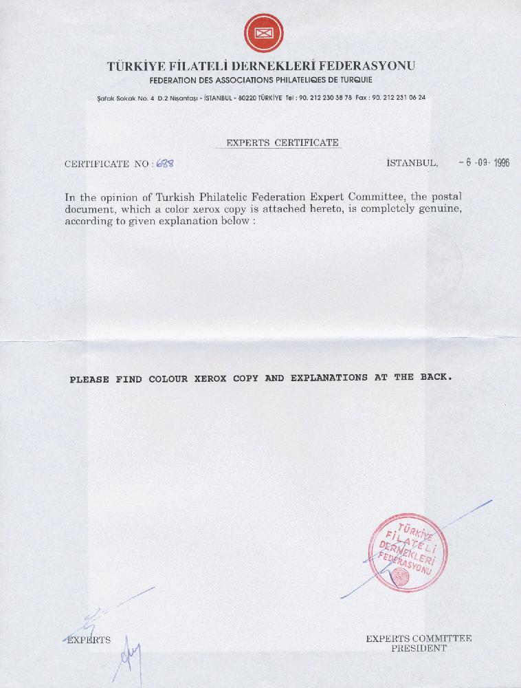 | Prüfer: | Türkiye Filateli Dernekleri Federasyonu, (Prüferkommission) |