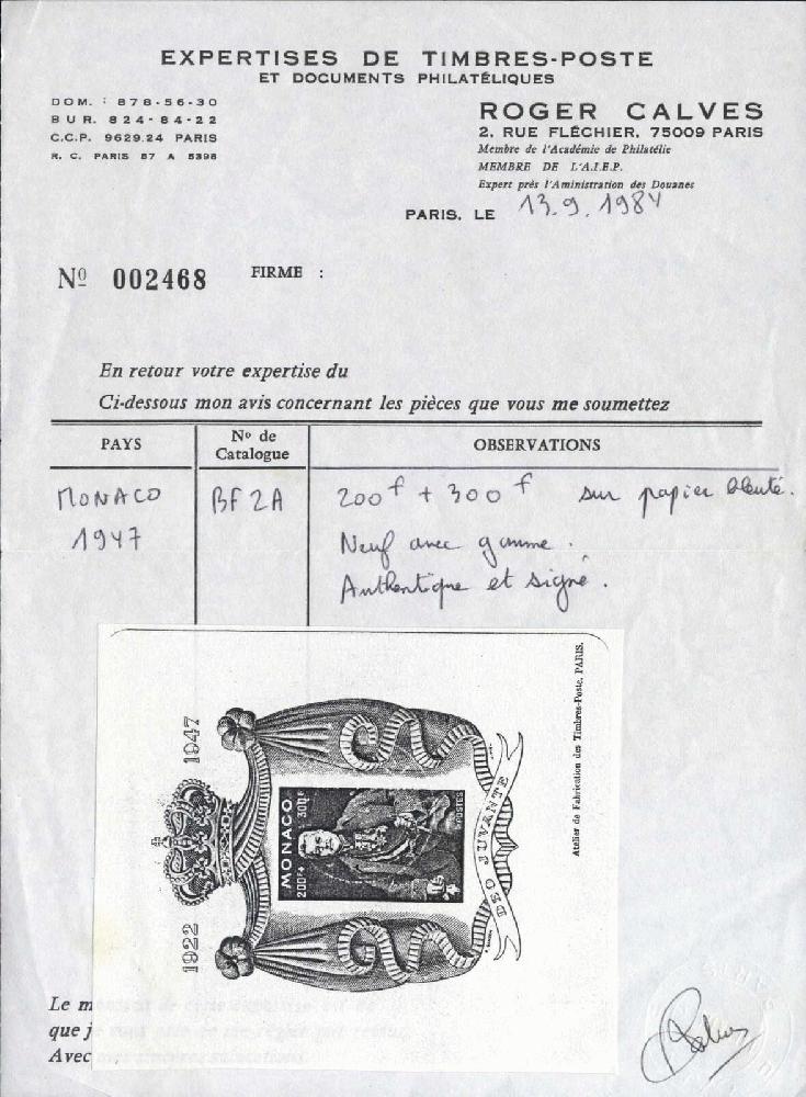 | Zusatzinformationen und Suchstichworte: | Viennafil 83. Live-Auktion 21. - 23. November 2023 Los 2065 Monaco 1947, Block 200 f. + 300 f. auf bläulichem Papier, postfrisch, sehr selten; Attest Calves (Mi. Bl. 2I, € 1.200) Zuschlag 320,00 EUR |