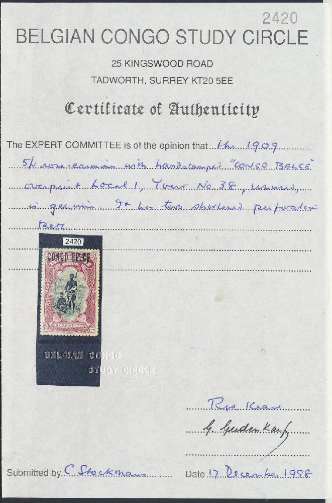 | Zusatzinformationen und Suchstichworte: | 175. Van Looy Auktion 16. - 21. Oktober 2023 Los 2635 Belgisch-Kongo N° 38L1 5 Fr. karmin Mols mit Lokalaufdrucke Kongo BELGE type L1, mit Attest, Pracht (OBP € 195) Ausruf 24,00 EUR |