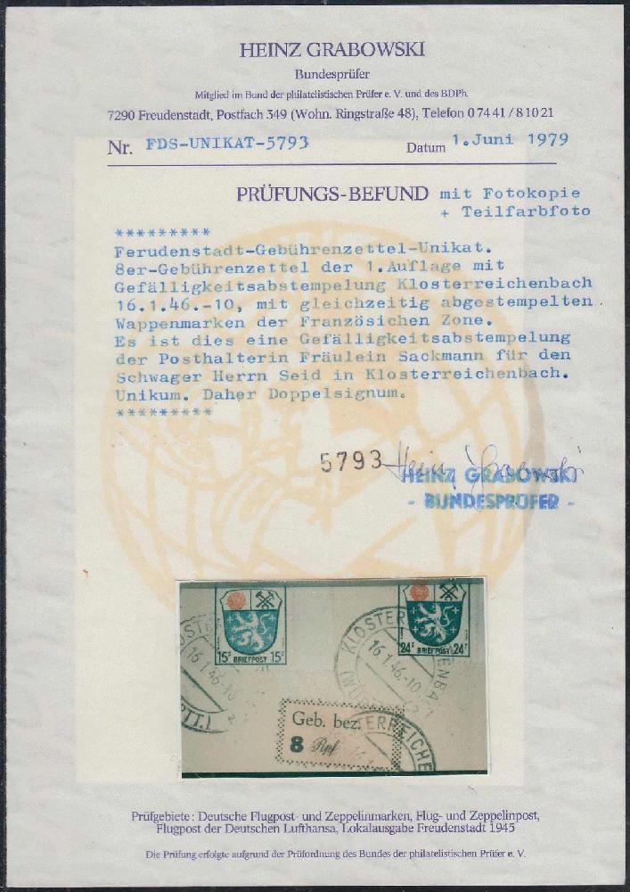 | Prüfgebiet: | Deutsche Lokalausgaben 1945 Freudenstadt |