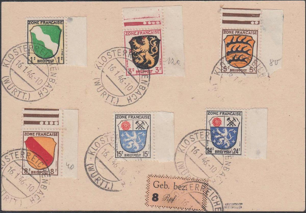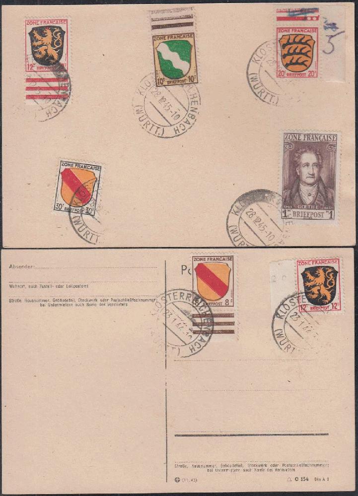| Zusatzinformationen und Suchstichworte: | 111. Briefmarken Lenz Auktion 6. - 9. November 2023 Los 6428 Deutsche Lokalausgabe Freudenstadt FREUDENSTADT, 8 Pf. Gebührenzettel, 1 x zusammen mit Frz. Zone Allg. Ausgaben auf 3 Karten, Gefälligkeitsabstempelung Klosterreichenbach der Posthalterin Fräulein Sackmann für Ihren Schwager, Unikum, Befund Grabowski Zuschlag 100,00 EUR |