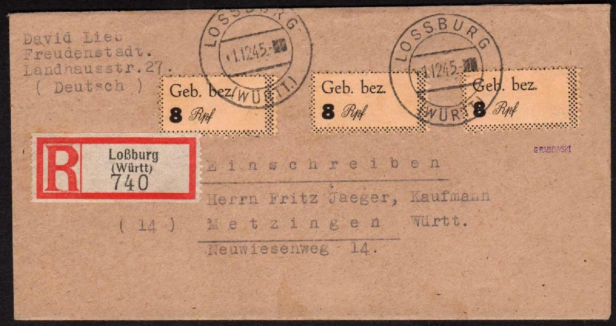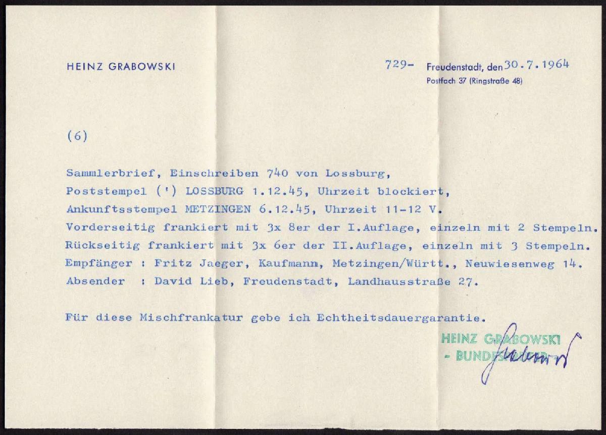| Prüfgebiet: | Deutsche Lokalausgaben 1945 Freudenstadt |
