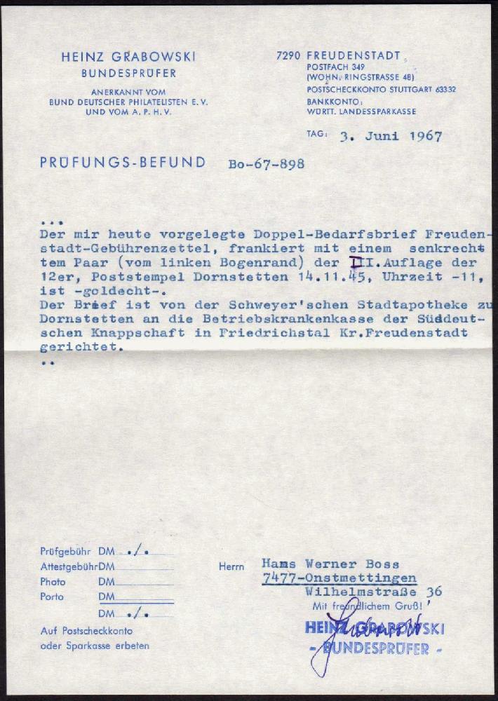 | Prüfgebiet: | Deutsche Lokalausgaben 1945 Freudenstadt |
