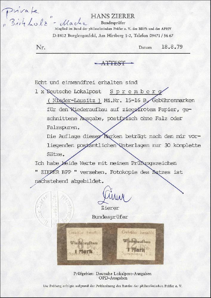 | Prüfer: | Zierer, Hanns (BPP (Bund Philatelistischer Prüfer)) |