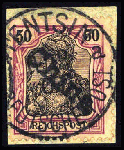 | Zusatzinformationen und Suchstichworte: | Württembergisches Auktionshaus 143. Versteigerung 15.-16. Dezember 2023 Los 4189 Deutsche Auslandspost China Verkehrter Aufdruck: 50 Pfg., Abart: Aufdruck von links oben nach rechts unten, tadelloses Exemplar in perfekter Zähnung und mit zentr., gerade aufges. Stempel TIENTSIN 11/12 00 auf Briefstück. Diese verkehrten Aufdrucke sind nur auf der Wertstufe zu 5 Pfg. und der hier gezeigten 50 Pfg. bekannt, sie zählen zu den größten Raritäten der gesamten Deutschland-Philatelie, was sich schon in der hohen Michel-Bewertung widerspiegelt Ausruf 24.000,00 EUR |