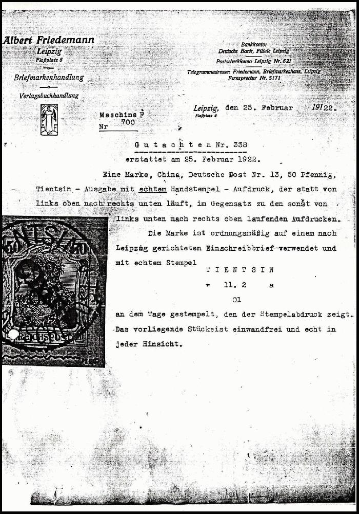 | Prüfgebiet: | Deutsche Auslandspostämter China |