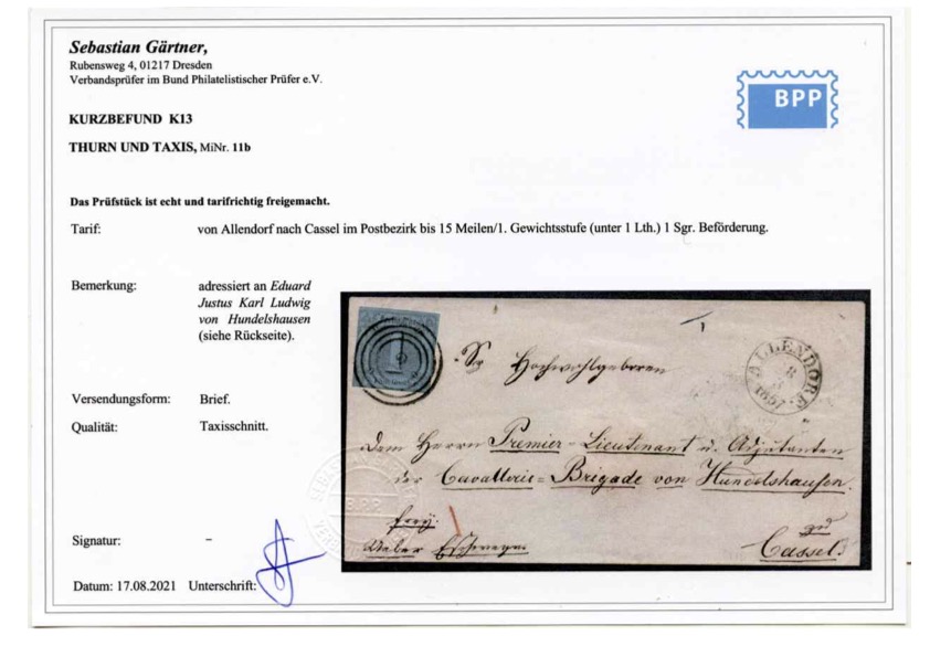 | Prüfgebiet: | Altdeutschland Thurn und Taxis |
