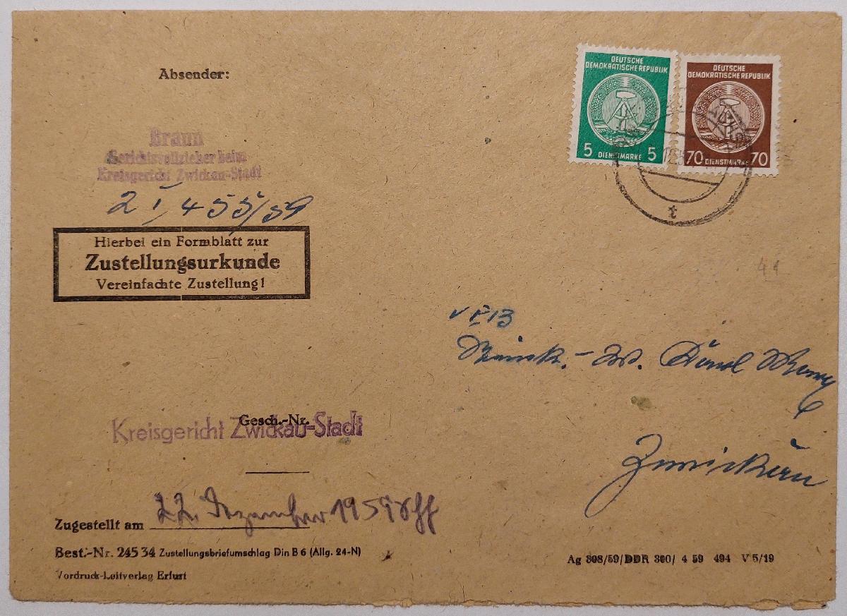 | Zusatzinformationen und Suchstichworte: | Ortsbrief, 1. Gewichtsstufe, Zustellurkunde, Stempel ZWICKAU (SACHS) 2 t, einwandfrei |