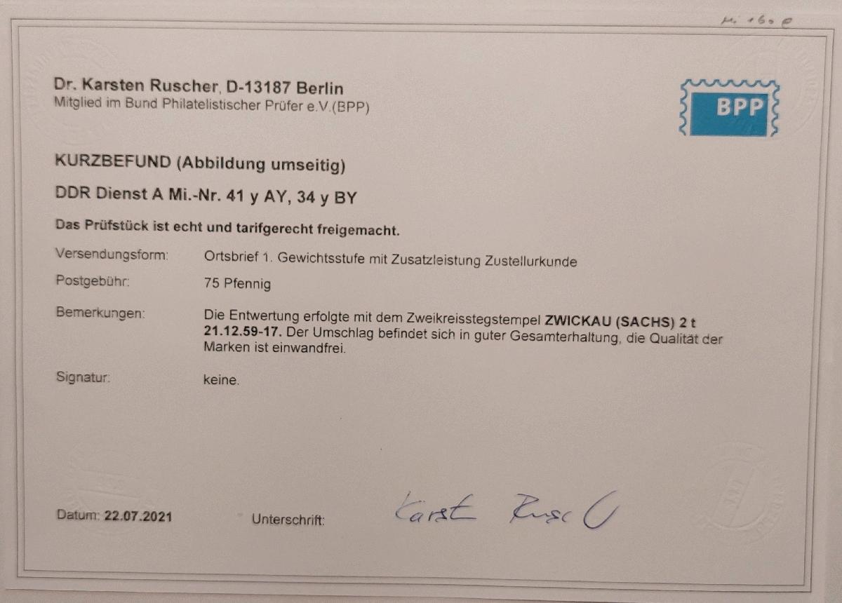 | Prüfgebiet: | DDR Dienstmarken - A Verwaltungspost B |