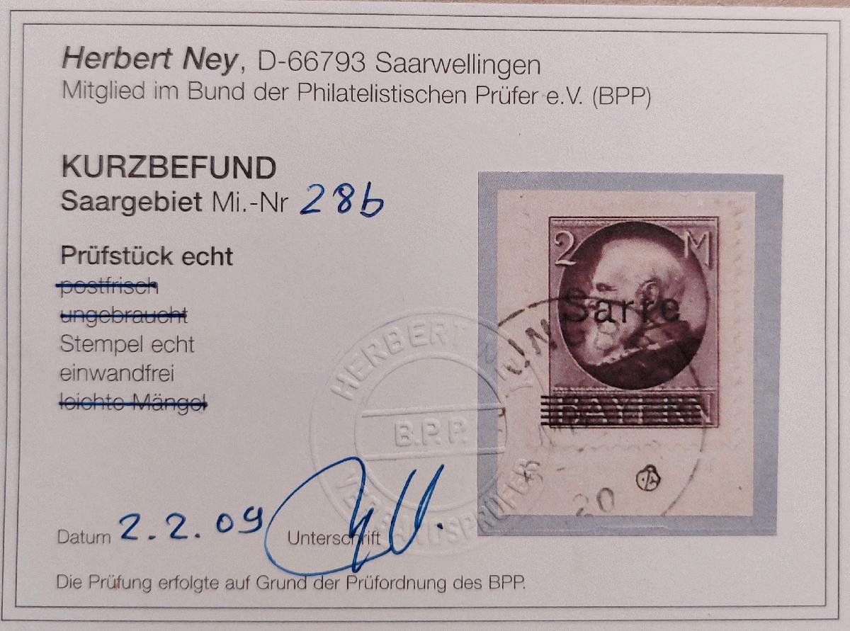 | Prüfgebiet: | Saargebiet (Mi-Nr. 1 - 205) |