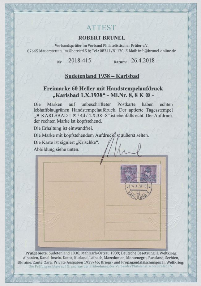 | Prüfgebiet: | Sudetenland Karlsbad |