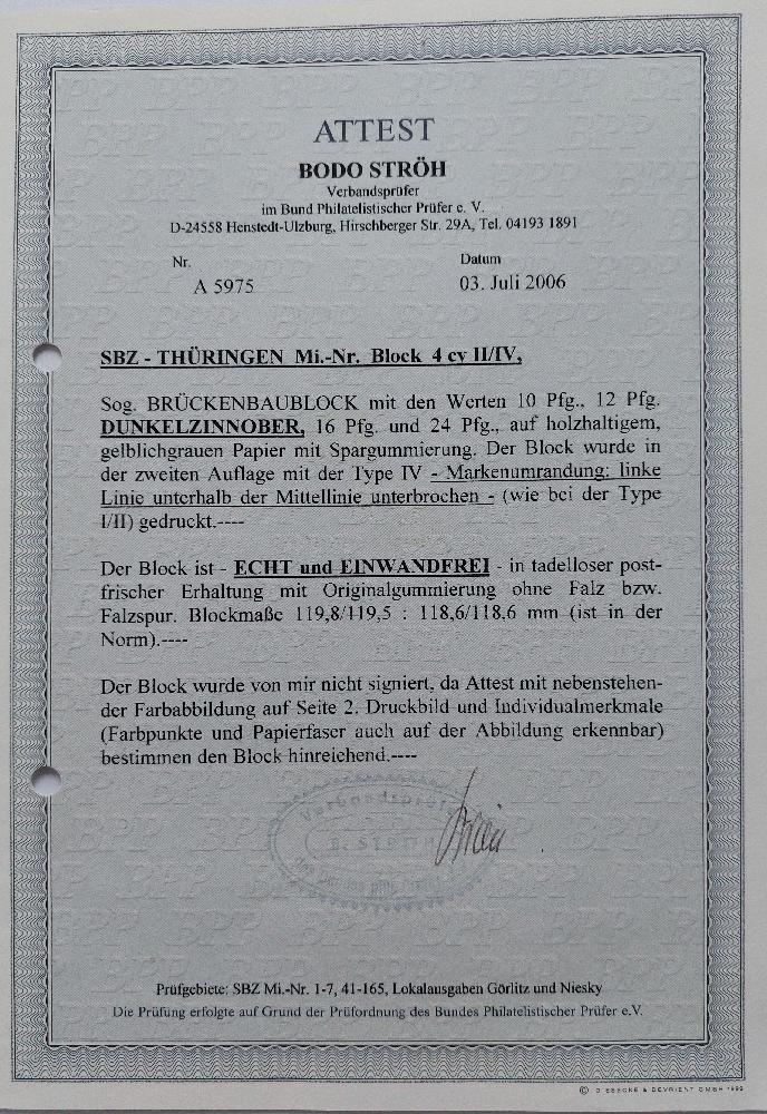 | Prüfer: | Ströh, Bodo (BPP (Bund Philatelistischer Prüfer)) |