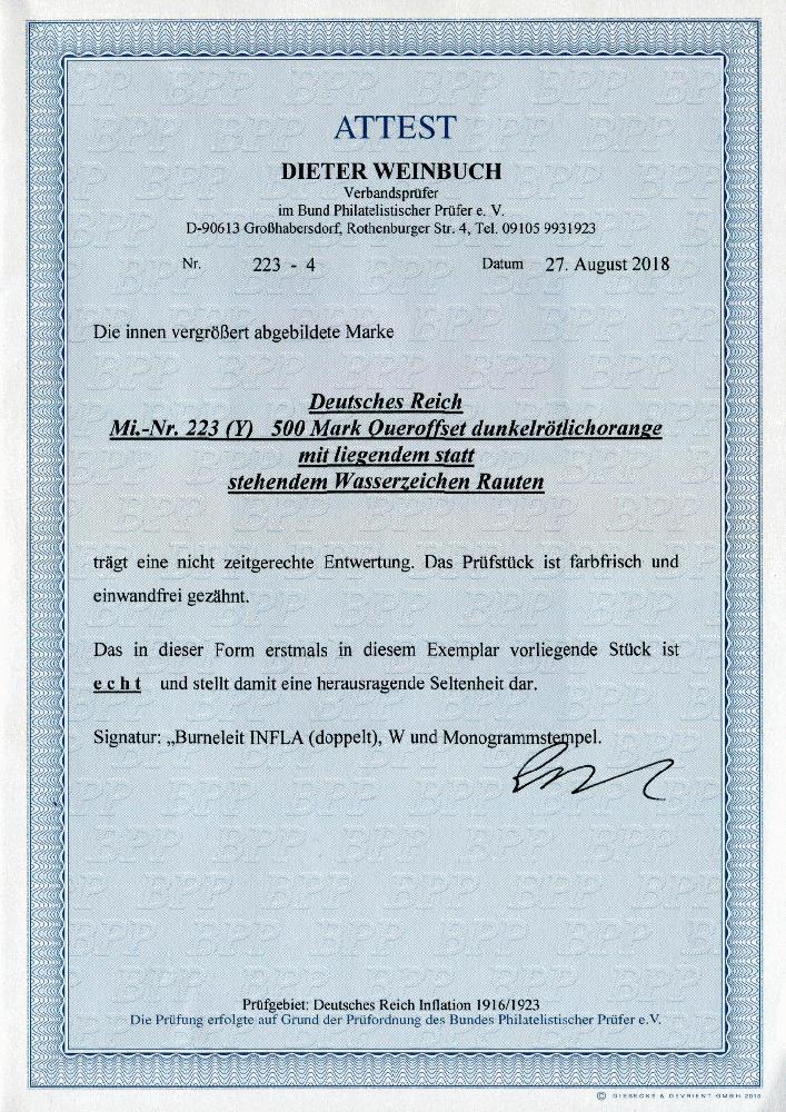 | Prüfgebiet: | Deutsches Reich 1919 - 1923 (Mi-Nr. 107 - 343) |