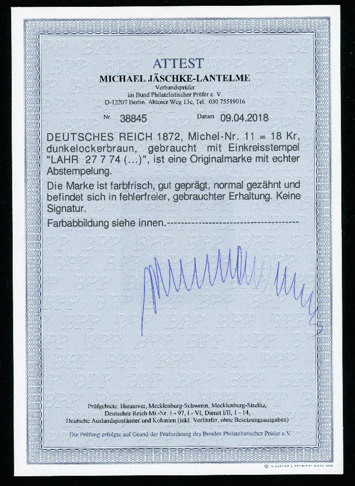 | Prüfer: | Jäschke-Lantelme, Michael (BPP (Bund Philatelistischer Prüfer)) |