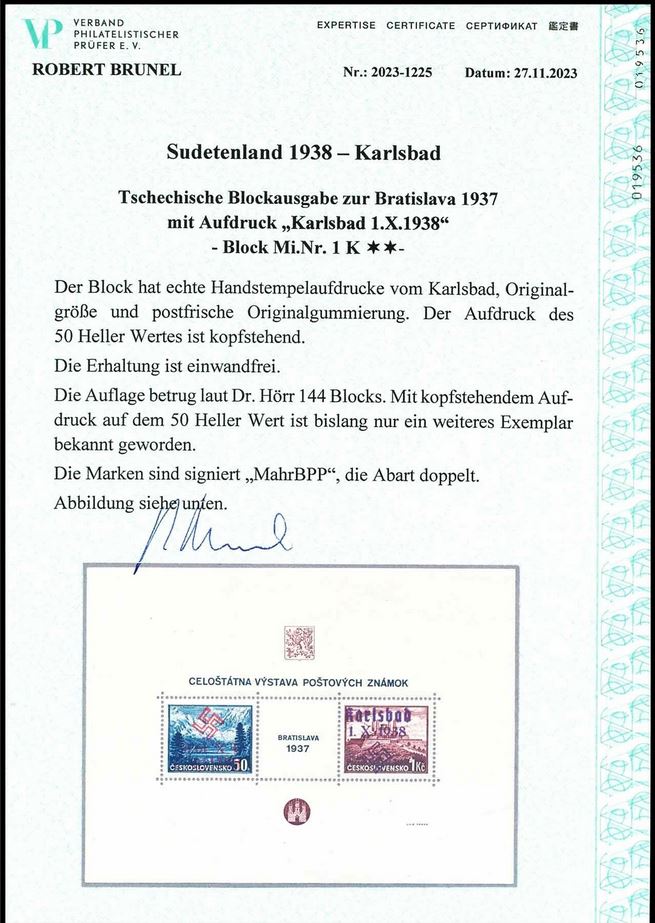 | Prüfgebiet: | Sudetenland Karlsbad Blocks |