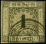 | Zusatzinformationen und Suchstichworte: | 383. Auktion Heinrich Köhler Auktionstermin 14.–15. & 18.–23. März 2024 Los 3657 Altdeutschland Baden 1 Kr. auf sämisch, farbfrisch und voll- bis überrandig, links mit Teil der Nachbarmarke, sauber entwertet durch Nr. "79" LAHR, tadellos. Signiert Köhler und Fotoattest Stegmüller BPP (2024) Ausruf 300,00 EUR |