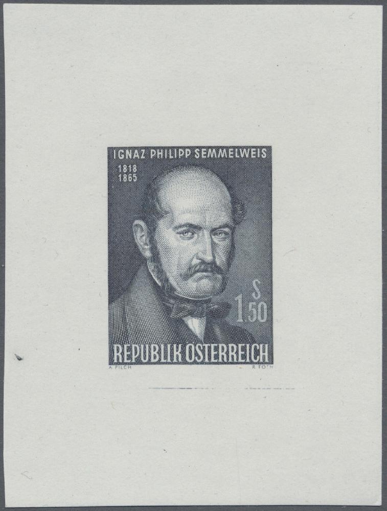| Zusatzinformationen und Suchstichworte: | Christoph Gärtner 58. Auktion 19. - 23. Februar 2024 Los 3318 D Österreich 1965, 1,60 S "100. Todestag von Dr. Ignaz Semmelweis", ungezähnter Einzelabzug in anthrazit. "Eine dekorative Seltenheit der Zweiten Republik" Ausruf 500,00 EUR |