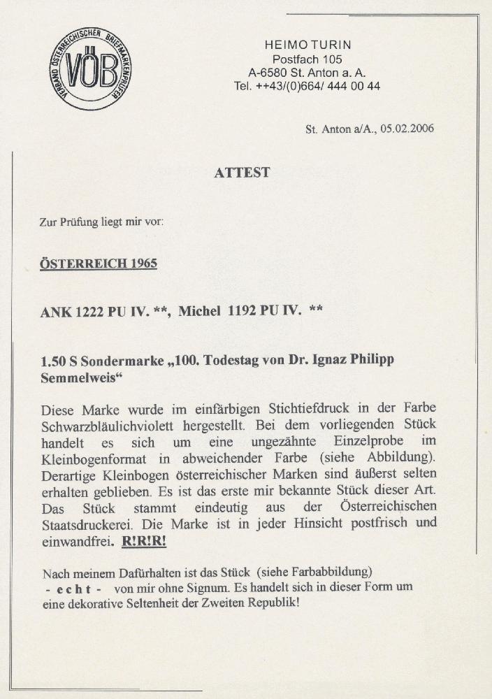 | Prüfer: | Turin, Heimo (VÖB (Verband Österreichischer Briefmarkenprüfer)) |
