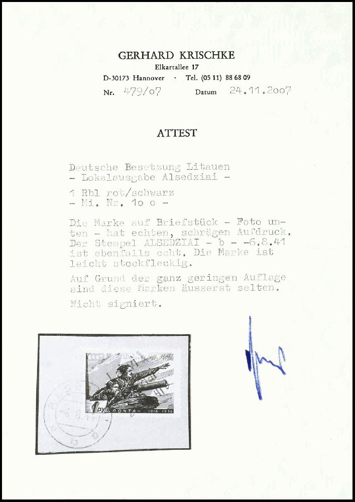 | Prüfgebiet: | Deutsche Besetzung WK 2 Litauen Alsedziai |