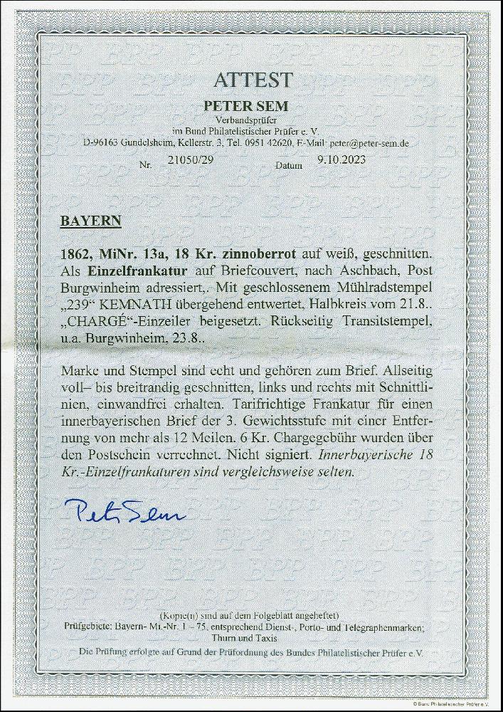 | Prüfer: | Sem, Peter (BPP (Bund Philatelistischer Prüfer)) |
