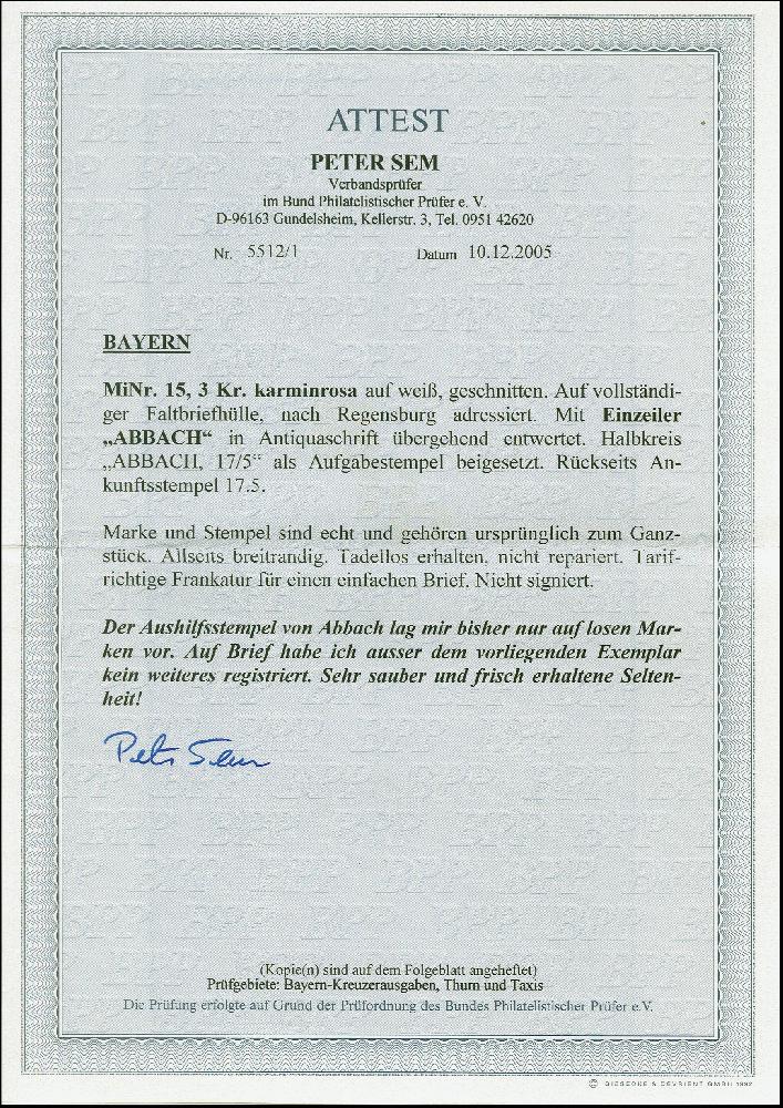 | Prüfer: | Sem, Peter (BPP (Bund Philatelistischer Prüfer)) |