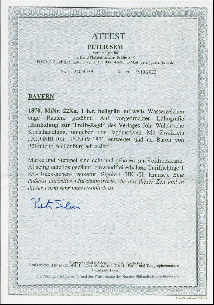 | Prüfer: | Sem, Peter (BPP (Bund Philatelistischer Prüfer)) |