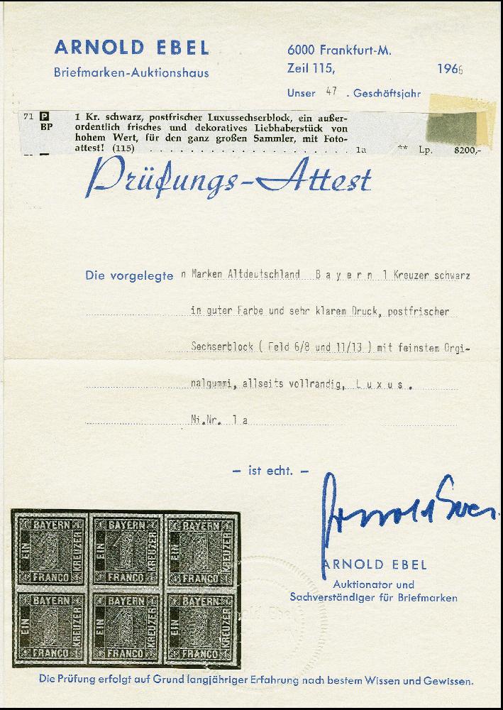 | Zusatzinformationen und Suchstichworte: | 383. Auktion Heinrich Köhler 14.–15. & 18.–23. März 2024 Los 3678 Altdeutschland Bayern 1 Kr. schwarz, waagerechter 6er-Block, farbfrisch und allseits breitrandig, mit fast allen Zwischenlinien, ungebraucht, 4 Werte postfrisch. Eine seltene Einheit in tadelloser Erhaltung. Unsigniert, Fotoattest Brettl BPP (1999) Ausruf 4.000,00 EUR |