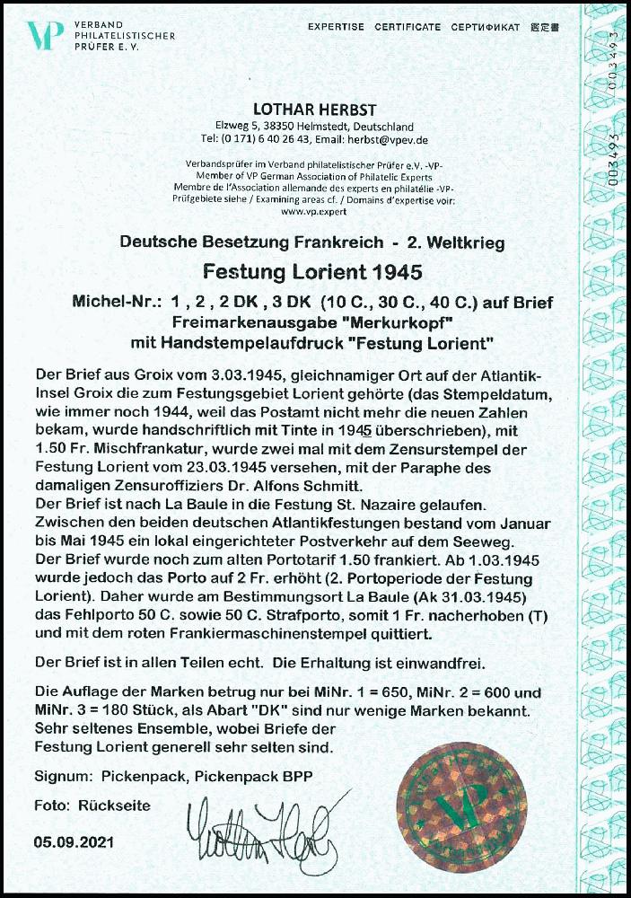 | Prüfgebiet: | Deutsche Besetzung WK 2 Frankreich Lorient |