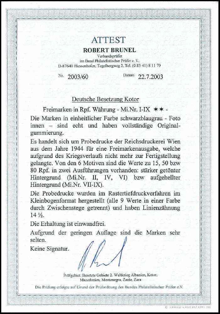 | Prüfgebiet: | Deutsche Besetzung WK 2 Kotor |