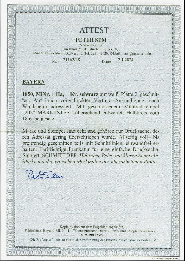 | Prüfer: | Sem, Peter (BPP (Bund Philatelistischer Prüfer)) |