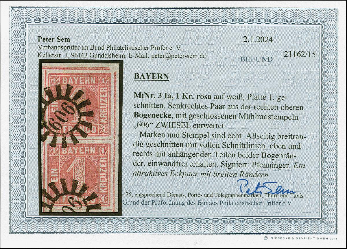 | Prüfer: | Sem, Peter (BPP (Bund Philatelistischer Prüfer)) |