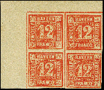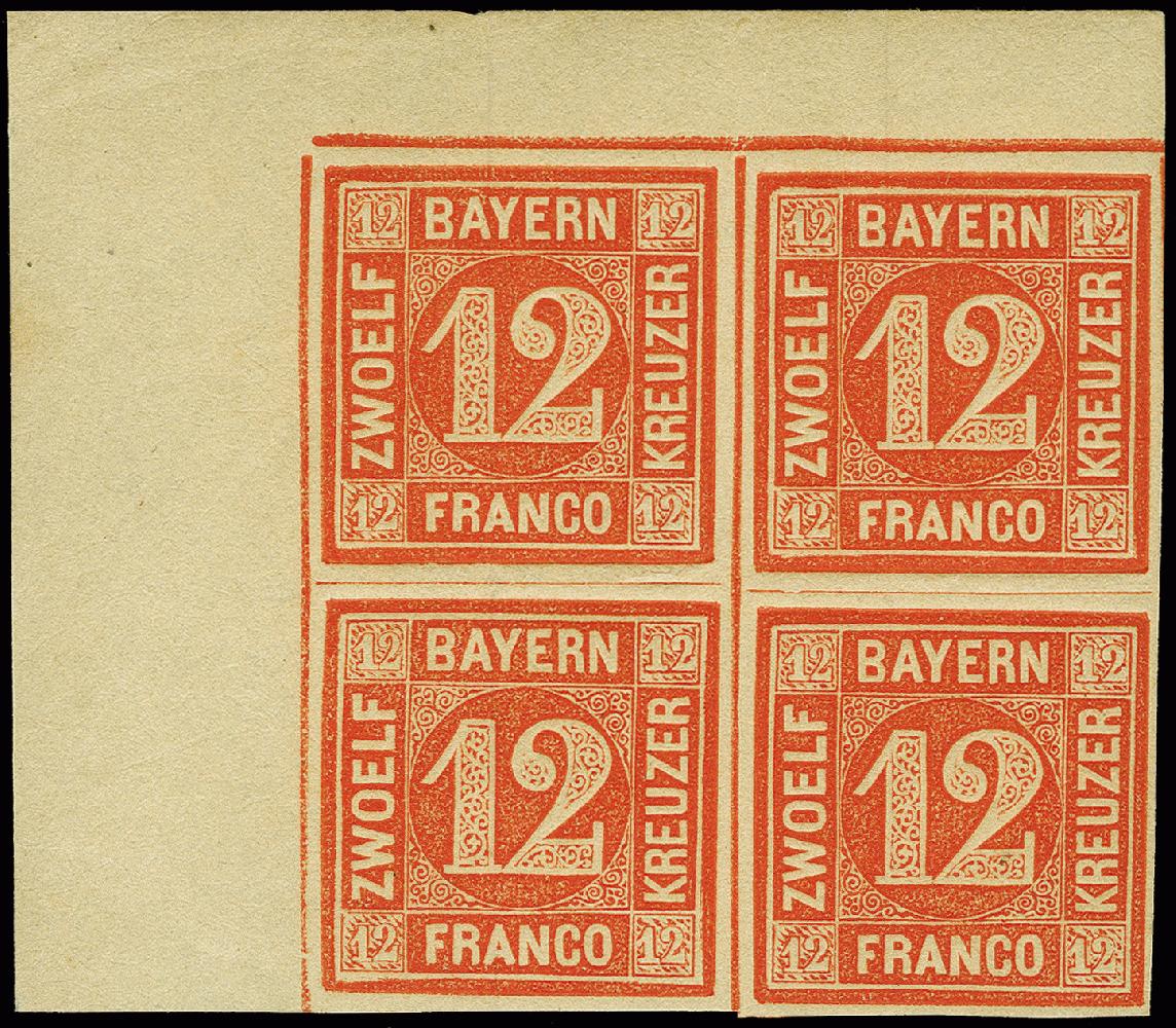 | Zusatzinformationen und Suchstichworte: | 383. Auktion Heinrich Köhler 14.–15. & 18.–23. März 2024 Los 3733 Altdeutschland Bayern 12 Kr. rot Im Viererblock aus der linken oberen Bogenecke, farbfrisch und voll-bis breitrandig mit 7/15 mm Bogenrand, postfrisch, in tadelloser Erhaltung. Signiert Pfenninger und Fotoattest Sem BPP (2024) Ausruf 400,00 EUR |