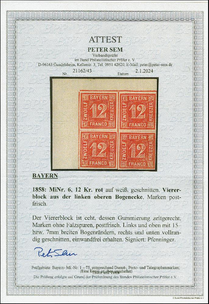 | Prüfer: | Sem, Peter (BPP (Bund Philatelistischer Prüfer)) |