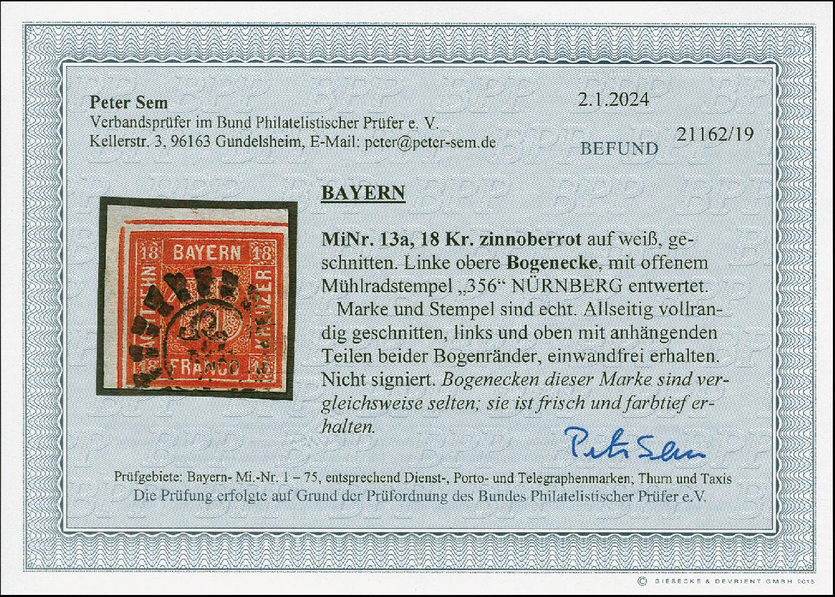 | Prüfer: | Sem, Peter (BPP (Bund Philatelistischer Prüfer)) |