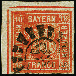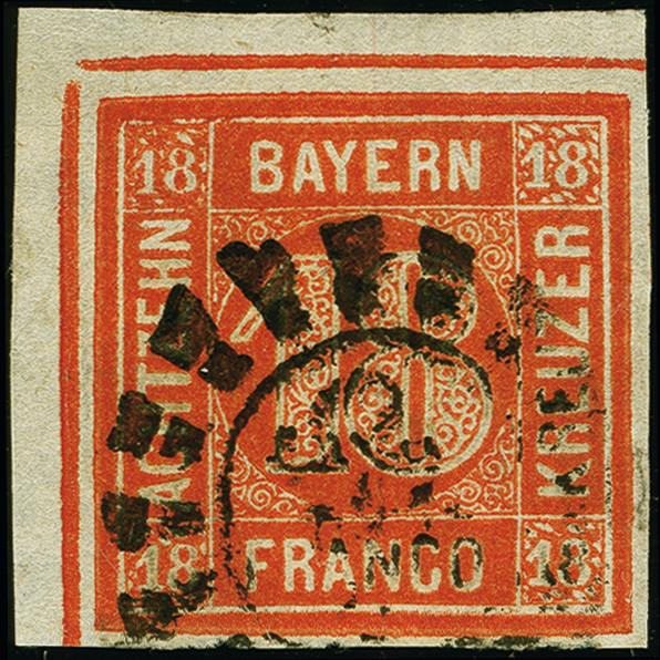 | Zusatzinformationen und Suchstichworte: | 383. Auktion Heinrich Köhler 14.–15. & 18.–23. März 2024 Los 3752 Altdeutschland Bayern 18 Kr. zinnoberrot, farbfrisch und allseits breitrandige linke obere Bogenecke, mit schmalen Bogenrändern, entwertet durch oMR "356" NÜRNBERG. Tadellos. Fotobefund Sem BPP Ausruf 100,00 EUR |