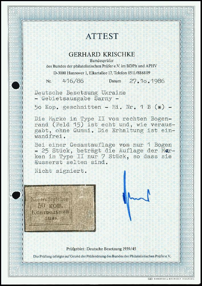 | Prüfer: | Krischke, Gerhard (BPP (Bund Philatelistischer Prüfer)) |