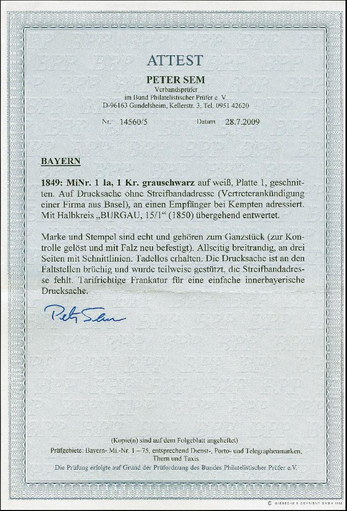 | Prüfer: | Sem, Peter (BPP (Bund Philatelistischer Prüfer)) |