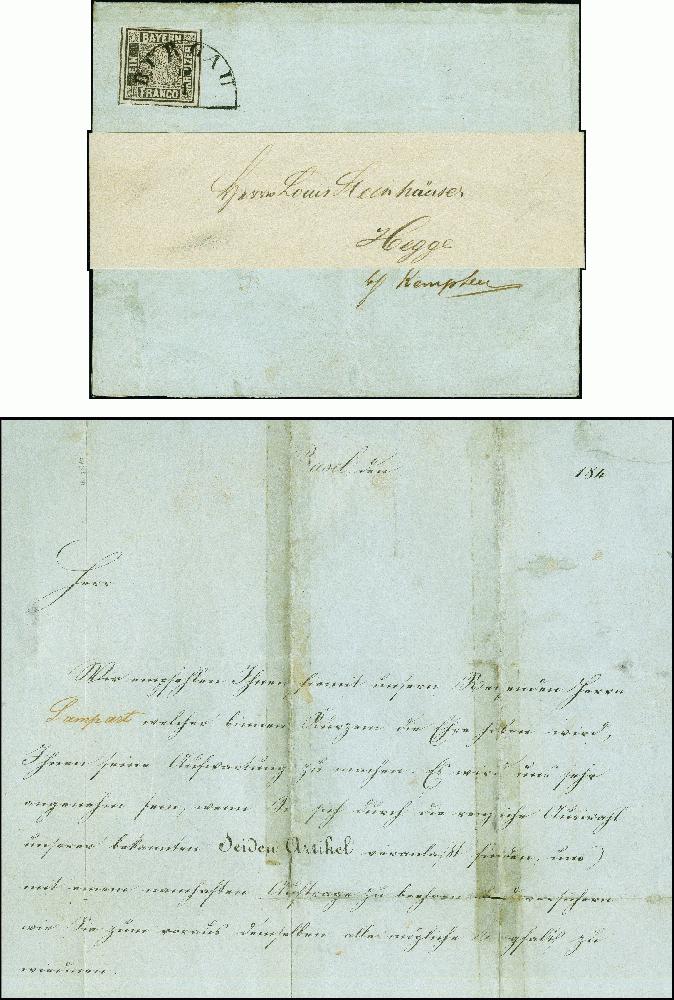| Zusatzinformationen und Suchstichworte: | 383. Auktion Heinrich Köhler 14.–15. & 18.–23. März 2024 Los 8211 Altdeutschland Bayern 1 Kreuzer grauschwarz, Platte 1, voll- bis meist breitrandig, mit Schnittlinien an 3 Seiten, mit sauber aufgesetztem Halbkreisburg "BURGAU 15/1" (1850) auf Drucksache (Vertreterankündigung einer Firma aus Basel) an einen Empfänger bei Kempten (Streifband aus optischen Gründen ergänzt). Die Marke ist tadellos (zur Kontrolle gelöst und mit Falz neu befestigt); die Drucksache an den Faltstellen teils brüchig und teilweise gestützt. Ein interessantes und seltenes Stück. Aus Burgau ist nur ein weiteres Ganzstück mit einer Nr. 1 registriert. Fotoattest Sem BPP (2009) Ausruf 1000,00 EUR |