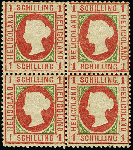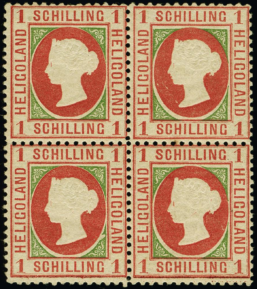 | Zusatzinformationen und Suchstichworte: | 383. Auktion Heinrich Köhler Auktionstermin 14.–15. & 18.–23. März 2024 Los 3883 Altdeutschland Helgoland 1 Sch. karmin/gelblichgrün im Viererblock, farbfrisch und meist gut gezähnt, lediglich die linke obere Marke zwei kurze Zähne, postfrisch bzw. die rechte obere Marke ungebraucht, das untere Paar unauffällige Bugspur, winziger Stockpunkt, eine insgesamt attraktive und seltene Einheit, Fotoattest Müller (2005) Ausruf 200,00 EUR |