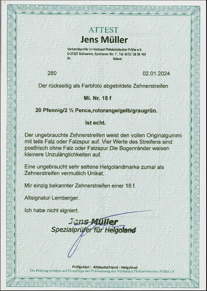 | Prüfer: | Müller, Jens (VP (Verband Philatelistischer Prüfer)) |