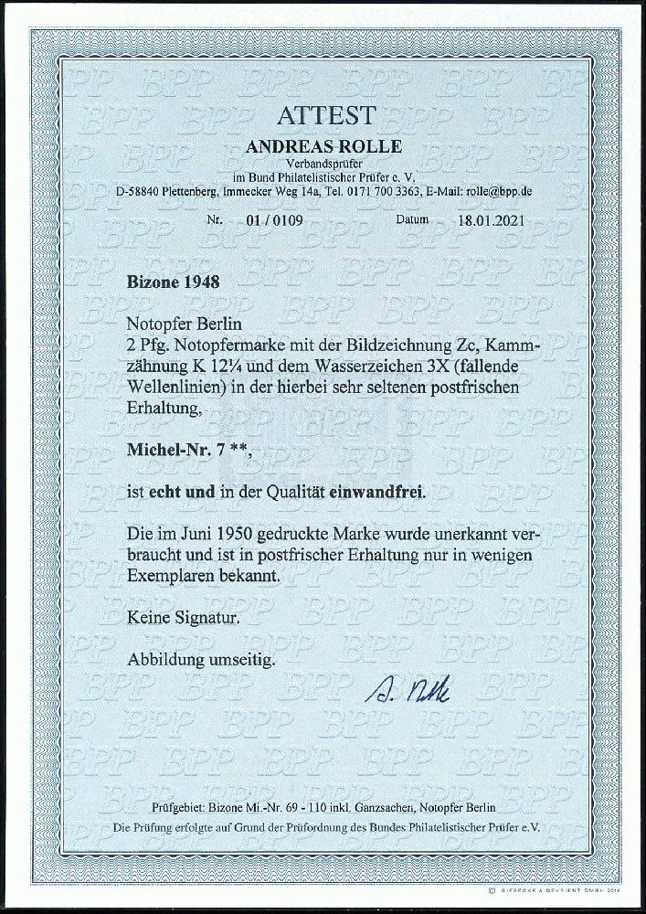| Prüfgebiet: | Alliierte Besetzung Notopfer- und Wohnungsbaumarken |