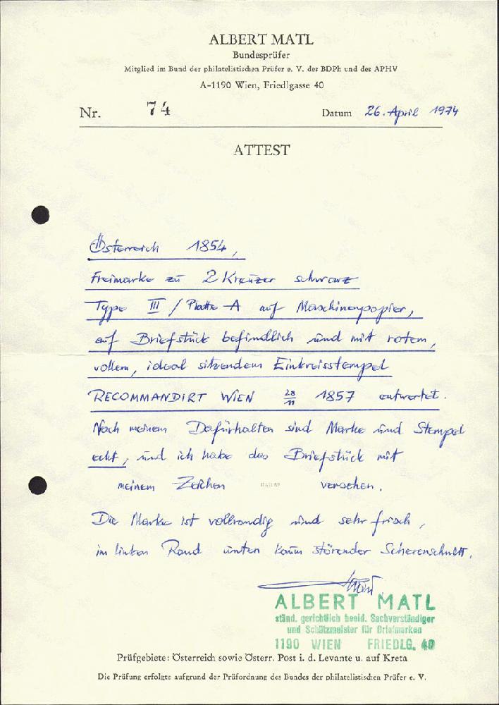 | Prüfer: | Matl, Albert (BPP (Bund Philatelistischer Prüfer)) |
