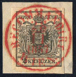 | Zusatzinformationen und Suchstichworte: | Merkurphila 58. Auktion 23. - 24. Februar 2024 Los 577 Österreich Abstempelungen Wien Österreich, 1850, Wien/Vororte, WIEN RECOMMANDIRT, perfekt sitzender und ideal abgeschlagener Einkreisstempel in ROT auf taufrischem erlesenem KABINETTBRIEFSTÜCK mit 2 M III, Attest Matl Ausruf 120,00 EUR |