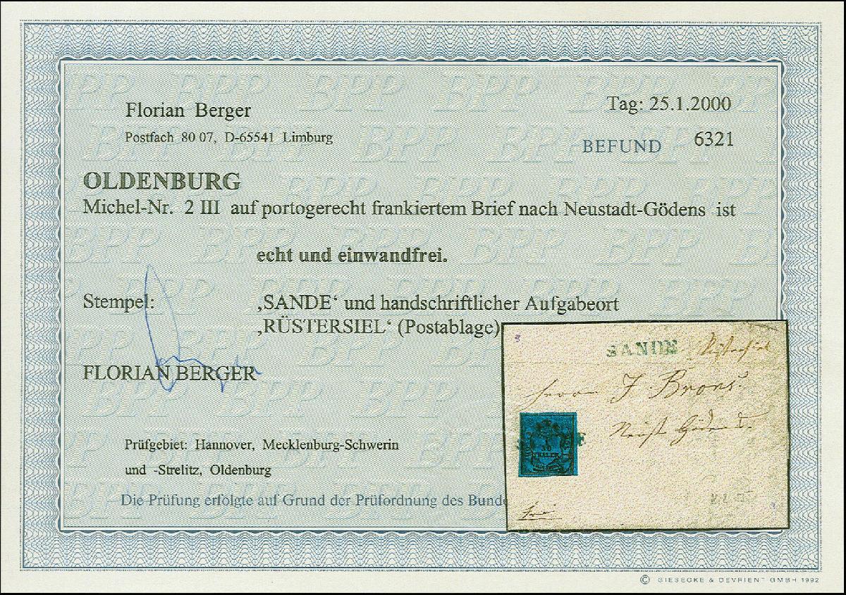 | Prüfer: | Berger, Florian (BPP (Bund Philatelistischer Prüfer)) |