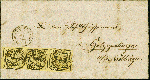 | Zusatzinformationen und Suchstichworte: | 383. Auktion Heinrich Köhler 14.–15. & 18.–23. März 2024 Los 4108 Altdeutschland Württemberg 1 Kr. auf altelfenbein, senkrechter 3er-Streifen, die untere Marke mit Plattenfehler 'Randlinie mehrfach eingekerbt', sehr schön farbfrisch, links mittig noch voll- sonst meist breitrandig, mit sauber auf- und nebengesetztem DKr. "TÜBINGEN 17 Mai 1856" auf komplettem Faltbrief (doppelt verwendet) nach Holzgerlingen bei Böblingen. Sehr schöne und einwandfreie Erhaltung. Ein in dieser Kombination einmalige Frankatur der seltenen Farbnuance. Fotoattest Heinrich BPP (2024) Ausruf 1.500,00 EUR |