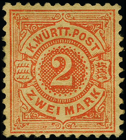 | Zusatzinformationen und Suchstichworte: | 383. Auktion Heinrich Köhler 14.–15. & 18.–23. März 2024 Los 4178 Altdeutschland Württemberg 1878, 2 M. dunkelzinnoberrot, farbfrisch und gut gezähnt, sauber ungebraucht, winziger Knitter, sonst tadellos, sign. Thoma BPP sowie Fotoattest Klinkhammer BPP (2023) Ausruf 400,00 EUR |
