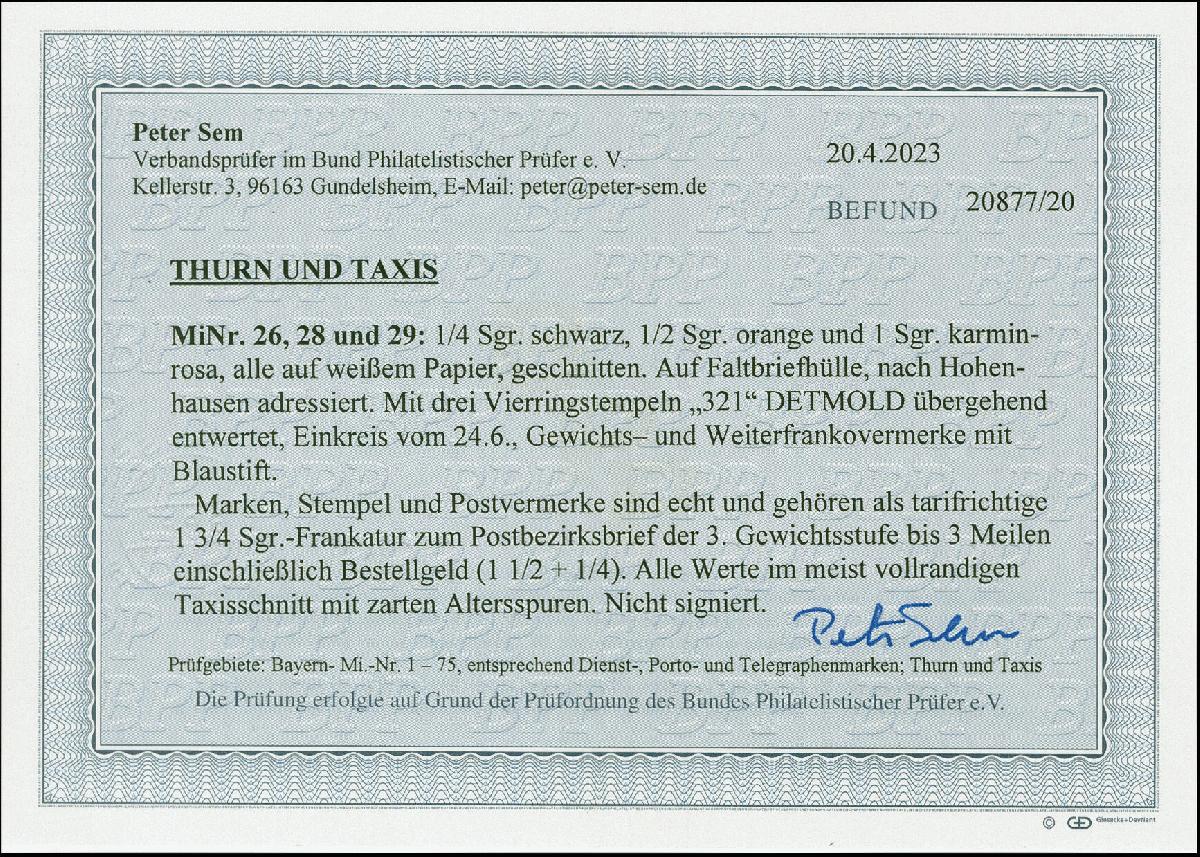 | Prüfgebiet: | Altdeutschland Thurn und Taxis |